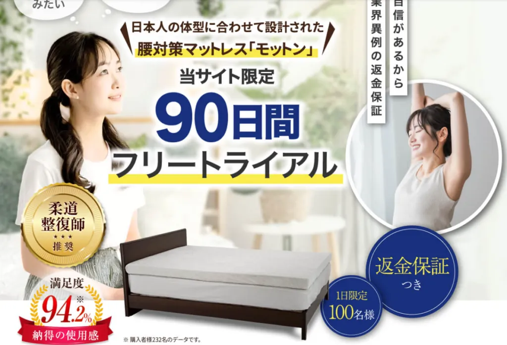 関連ページ:モットンマットレスの口コミ・評判を徹底解説/悪評はあるのか?腰への影響や腰痛対策の実態を検証